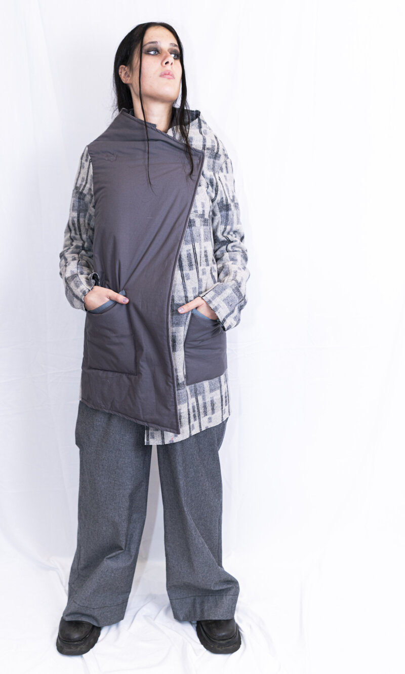 Giacca a doppio petto in lana, metà davanti in tinta unita e imbottito. Colore: Grigio