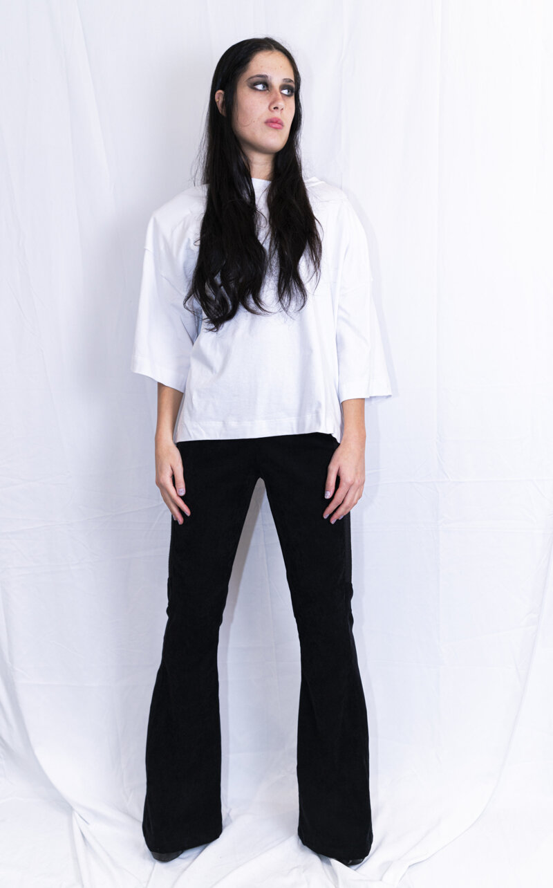 T-shirt in cotone mezza manica con spalline over . Colore: Bianco.